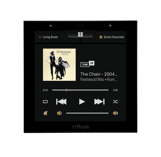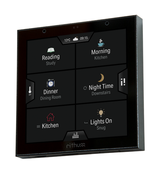 Rithum Switch; the award winning smart home touch panel for smart lighting, audio and climate control.